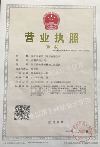 隆信過濾器有限公司是一家生產(chǎn)加工的公司,擁有完整、科學(xué)的質(zhì)量管理體系。隆信過濾器有限公司的誠(chéng)信、實(shí)力和產(chǎn)品質(zhì)量獲得業(yè)界的認(rèn)可。歡迎各界的朋友指導(dǎo)和業(yè)務(wù)洽談!